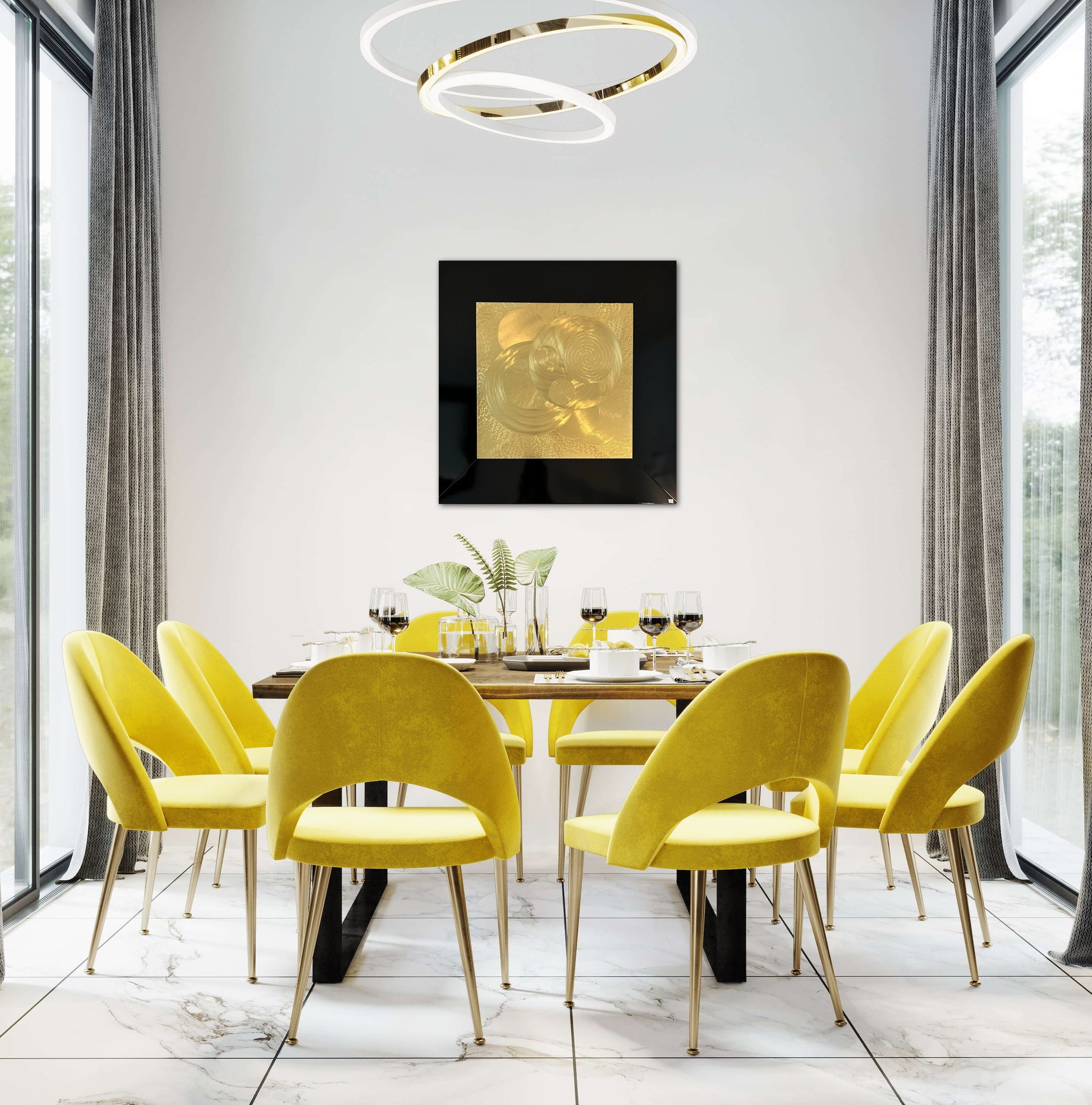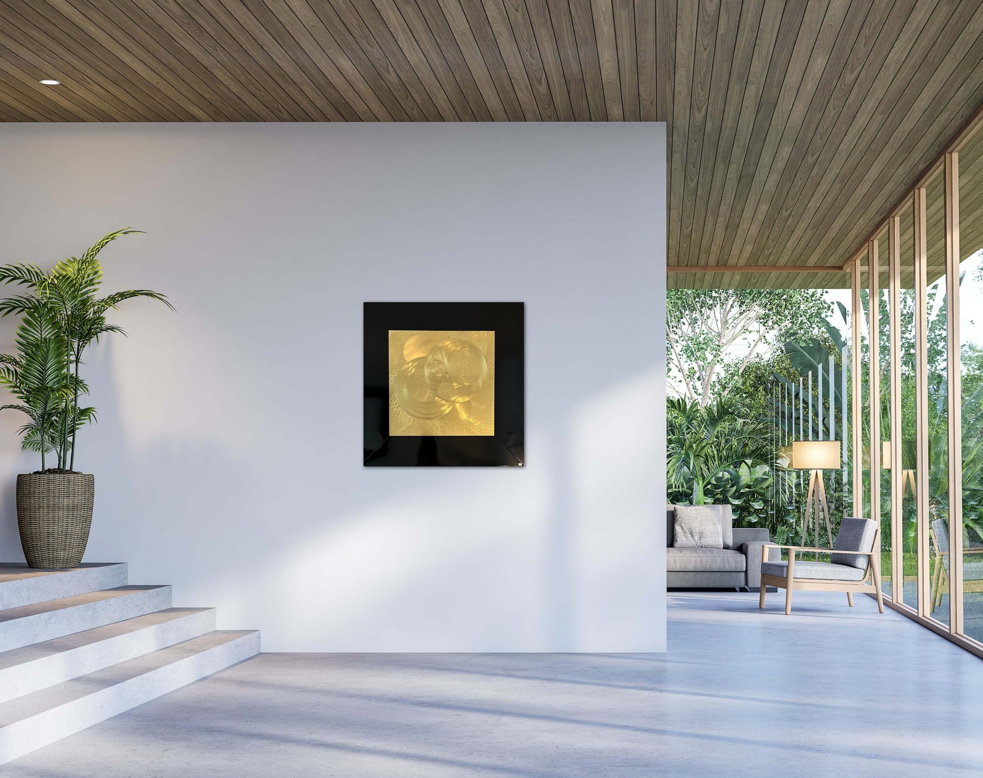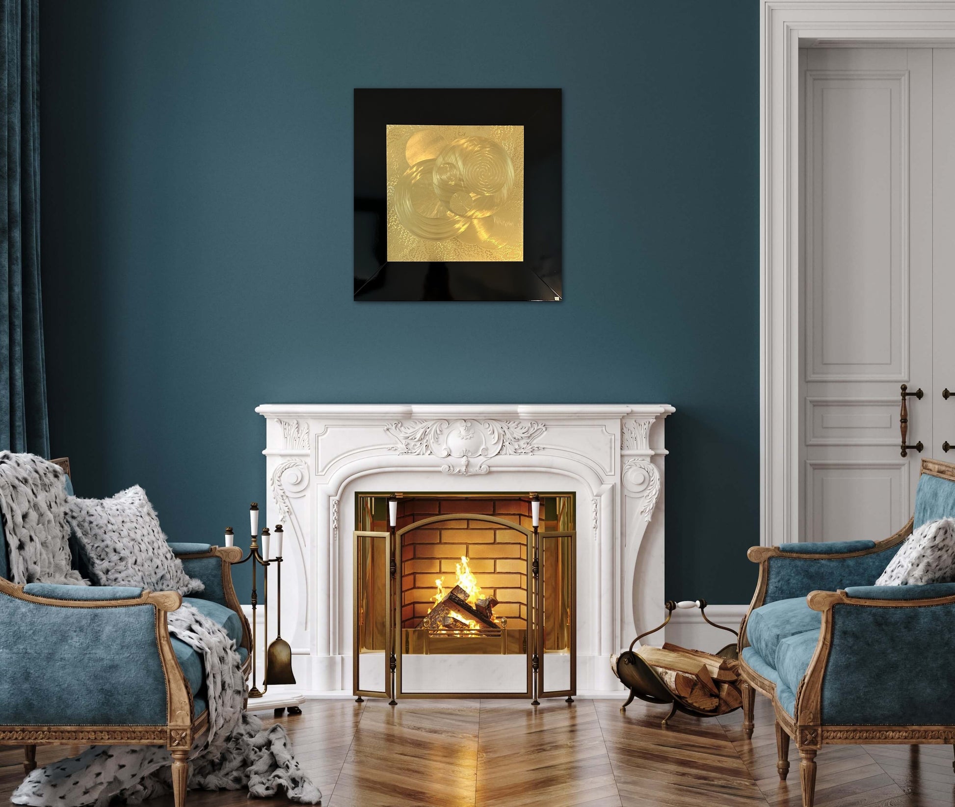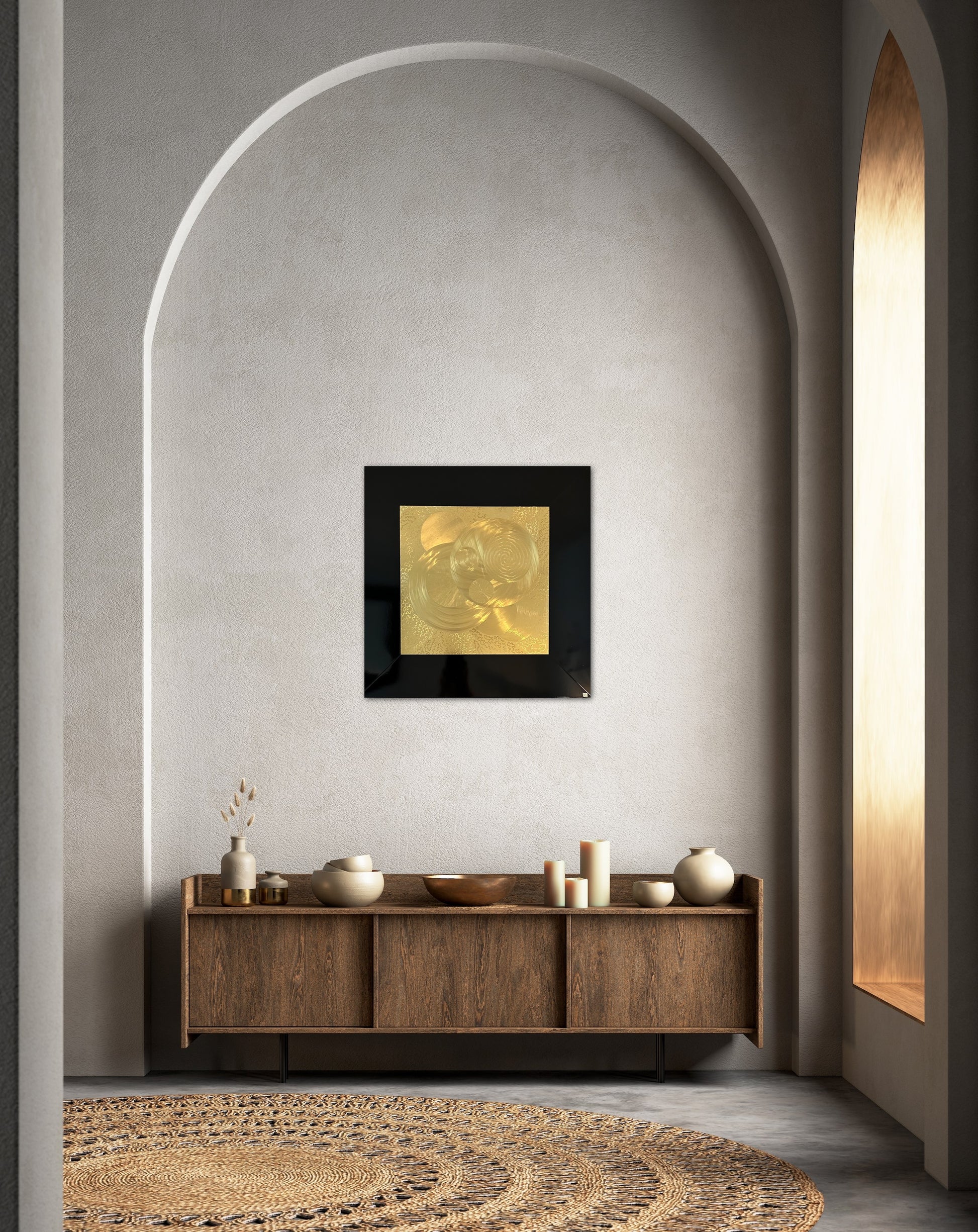 Är en glimt av det jag tolkar som en bit av evigheten en tavla som har ett eget liv och som förändras beroende på var du står när du ser på den. Mässingen glänser i skiftningarna beroende på hur ljuset faller på tavlan.